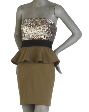 because the sequined bodice is just so pretty and eye-catching. And I love the Mad Men-inspired ruffle around the waist. Hot! (Alice + Oliva, $495)