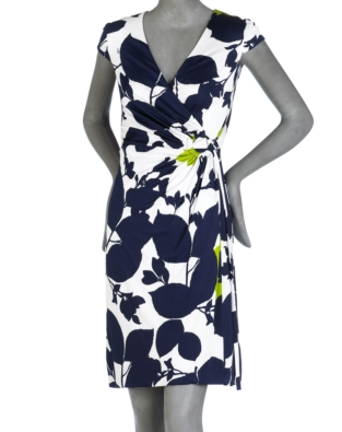 While I normally don’t LOVE large prints, this one works for me. I like the navy with the quick splashes of green. It’s interesting and classic while still being unique. And how cute are the little cap sleeves? (Trina Turk, $348)
