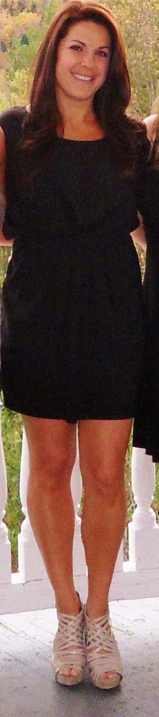 I was looking for the perfect little black dress to feature–and this was the hands-down winner. Aside from being a fun party dress, it really highlights Meredith’s showstopper legs. Not to mention those Pour Le Victoire heels. Hot, hot, hot!